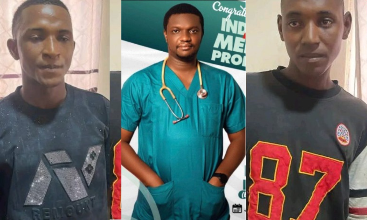 Two men suspected to be involved in the abduction of a medical doctor, Abu Ibrahim, and his brother, Abu Tahir—who was later killed—have been arrested at the Edo State University Teaching Hospital in Auchi, Etsako West Local Government Area.