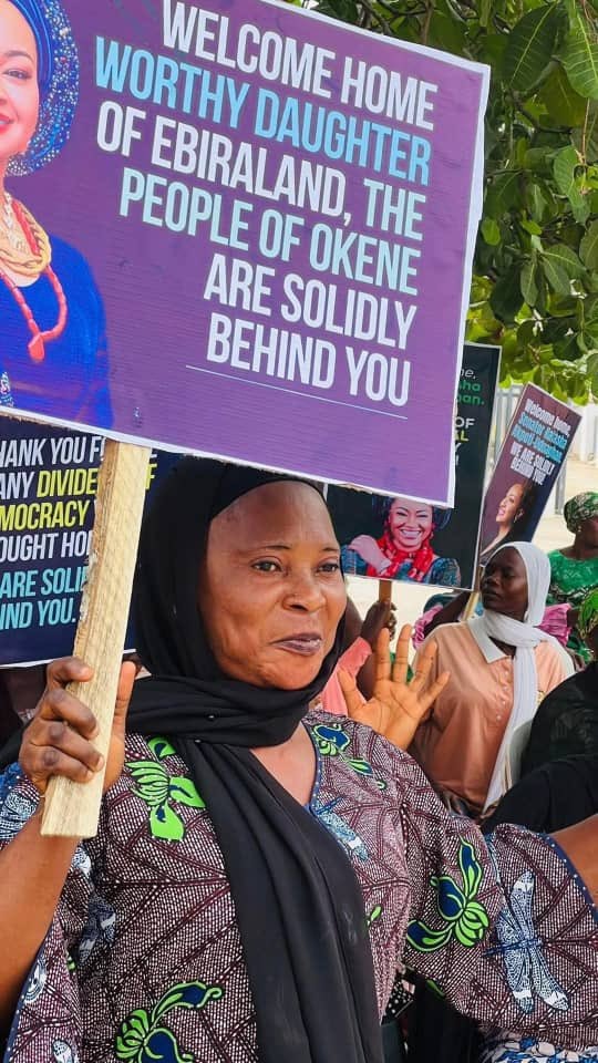 However, images circulating online from Tuesday, April 1, show enthusiastic supporters holding placards in solidarity with the suspended lawmaker. The inscriptions read: “Welcome home, worthy daughter of Ebiraland. The people of Okene are solidly behind you,” and “The people of Adavi are solidly behind you.”